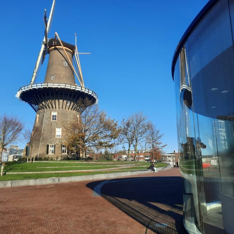 Adres: Molenwerf 1 in Leiden bij de voetgangerstoegang van de parkeergarage.